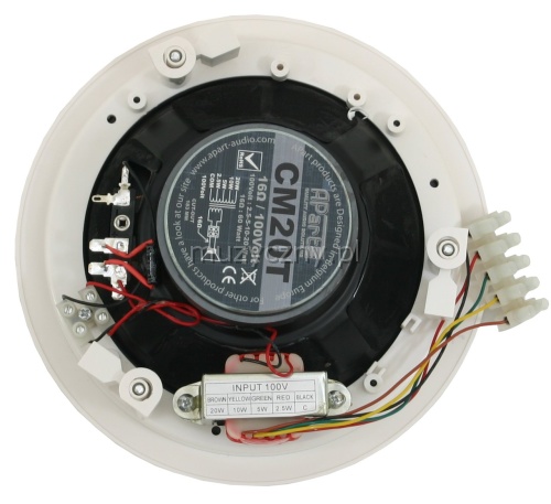 The APart CM20T 2-way built-in speaker can be used as a 16 Ohm or 100 Volt loudspeaker. It can be also used with high ceilings or places with background noises.