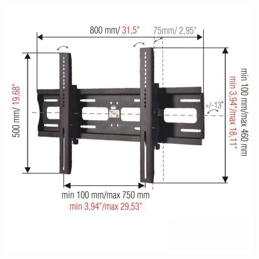 • Universal wall mount for 42″ – 60″ plasma/LCD screens, maximum weight up to 80 kg