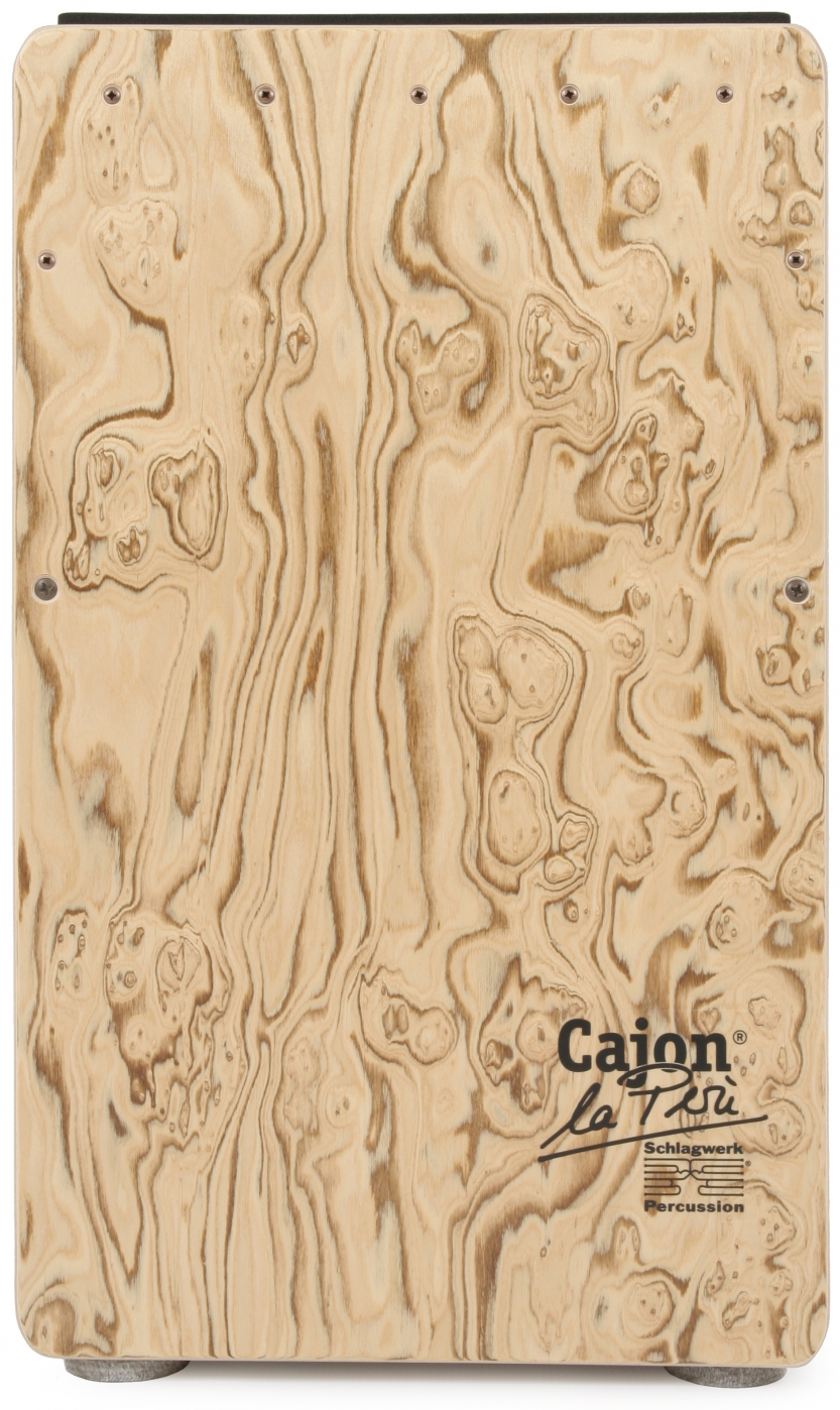 The attractive burl pattern on the wood draws the eye. The Gabon wood resonance box ensures that this exceptionally beautiful instrument also brings that rich punch typical of Schlagwerk to the stage.