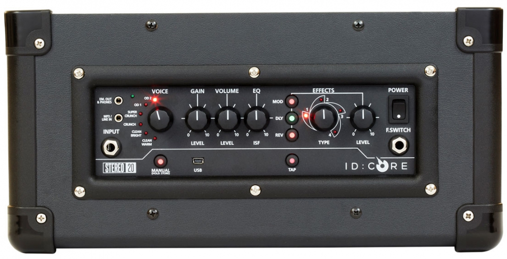 The ID Core Stereo 20 is a 2x10W ultimate entry level guitar amplifier. Incredible tone and flexibility is accessed by a simple and intuitive control set and delivered in SUPER WIDE STEREO to give an immersive playing experience that will have you hooked on playing guitar. Deep editing and storing of patches is simple using the Blackstar INSIDER software. Patches can be shared, uploaded and downloaded via the online community. The USB connector also allows you to record from your amp directly to your computer. An emulated output and MP3/line input complete the package. By using the unique Voice control and the patented ISF, ID:CORE Series amplifiers allow unparalleled flexibility and ease of use, enabling you to design the sound in your head and deliver it at home, in the studio or in rehearsal.