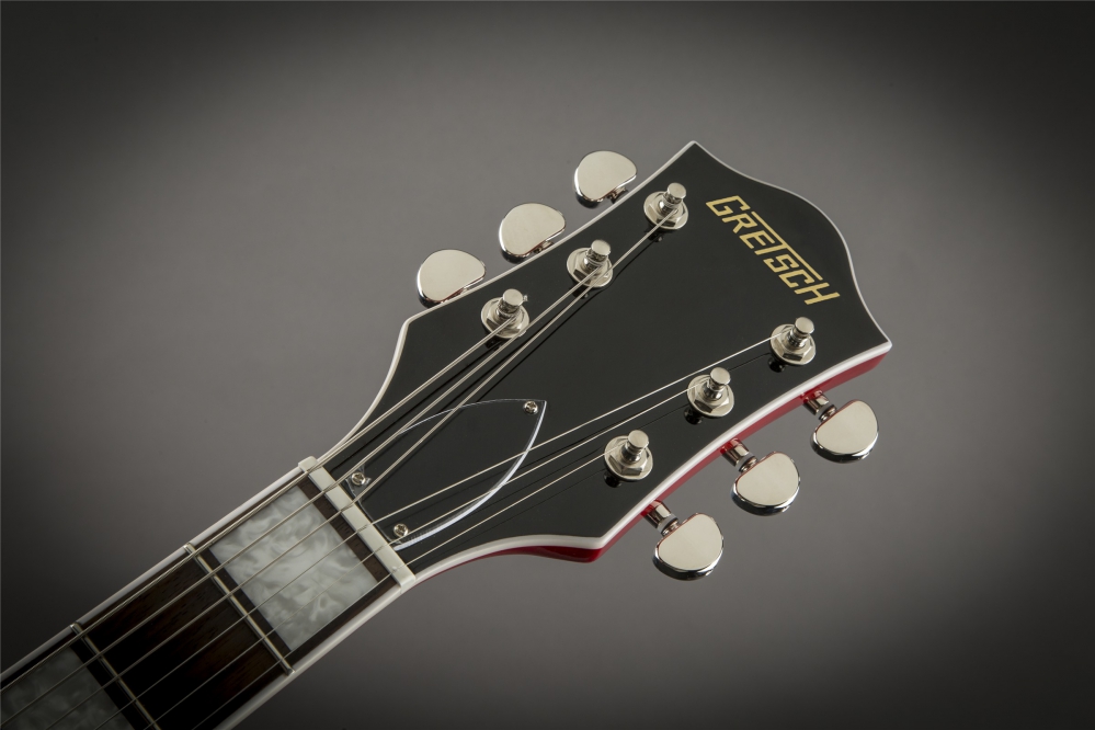 The secret to the Streamliner’s sound is a new offering from Gretsch—the Broad’Tron humbucking pickup. Specifically designed by the expert engineers at Gretsch for the Streamliner, this high-output pickup spawns robust lows, pristine highs and a throaty midrange for a unique tone that blends well with other instruments in a band context. This sonic power is harnessed and shaped by the traditional control layout—neck and bridge pickup volume controls, a master tone control, master volume control and three-way pickup switching. A fast-playing 12”-radius rosewood fingerboard with elegant pearloid block inlays and 22 medium jumbo frets sits atop the white-bound nato neck with a thin “U”-shaped profile—ideal for chord work or firing off hot-rodded riffing. Add some shimmer and expression to your playing with the Bigsby-licensed B60 vibrato tailpiece while the Adjusto-matic™ bridge with secured rosewood base and synthetic bone nut grant amazing tuning stability.