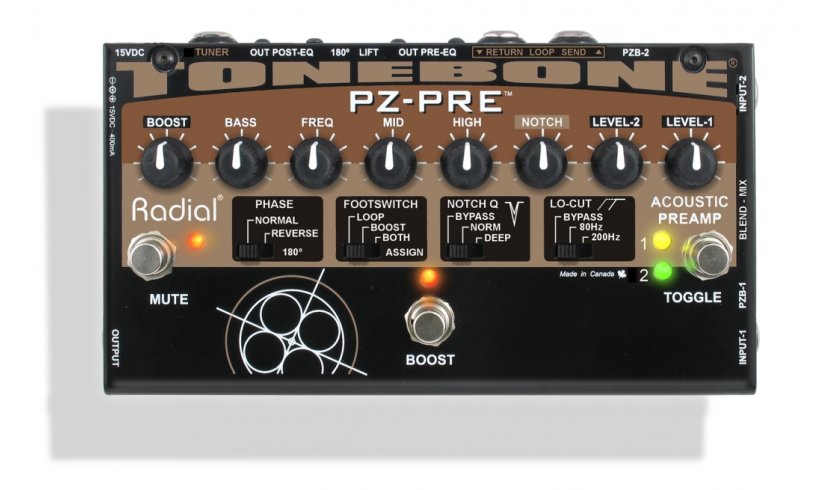 The Radial Tonebone PZ-Pre is the most powerful acoustic preamplifier ever to be put inside a pedal. And when we say acoustic, we do not just mean acoustic guitar - we mean ANY acoustic instrument including banjo, violin, cello, mandolin, contrabass, bouzouki or lute. The magic lies in the combination of high performance 100% discrete class-A PZB piezo boosters, an ultra-quiet preamp circuit that will adapt to any pickup system and a host of connectivity options that will put you in total control.
