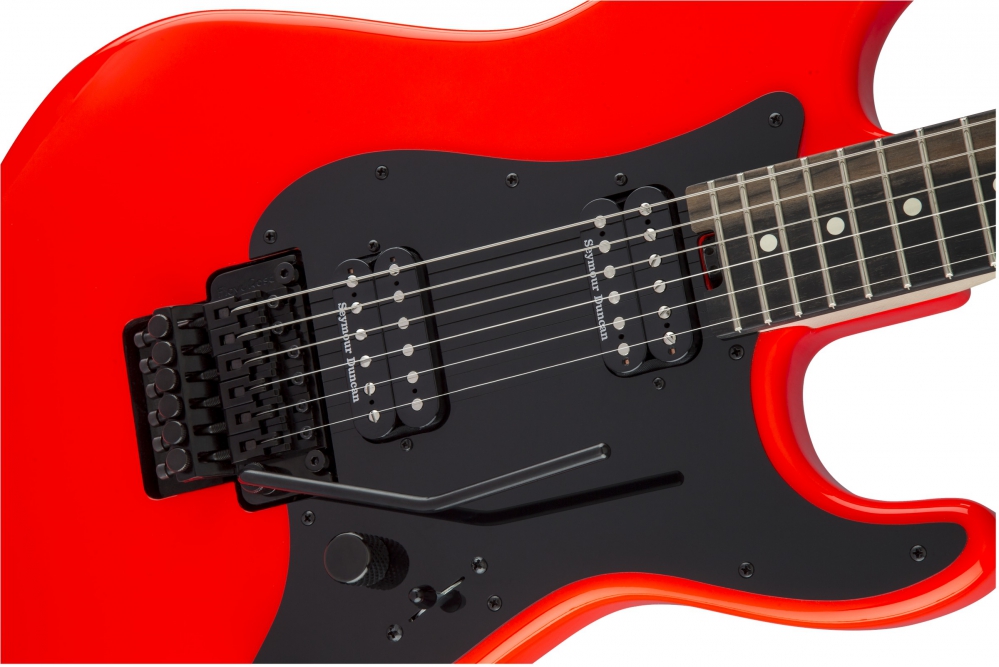 Hot-rodded for unparalleled performance and versatile sound, this instrument hosts a high-output Seymour Duncan Distortion humbucking bridge pickup and a warm, fat Seymour Duncan Distortion humbucking neck pickup. The volume control hides a push/pull coil split for even more highly useful tonal variations, ideal for everything from a biting lead sound to thick, chunky rhythm work. The No-Load tone control operates like a standard tone control from positions one through nine, removing itself from the circuit at position ten for transparent sound, letting the full natural voice of the guitar shine through. The Floyd Rose 1000 series recessed tremolo bridge system allows players to scream and rumble without sacrificing tuning stability.