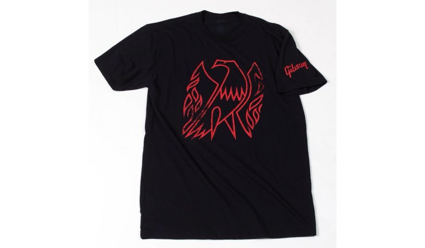 The radical red emblem of Gibson’s revolutionary early ’60s “reverse-body” Firebird dramatically sets off this white T-shirt. The characterfully distressed vintage-look print adorns a comfortable 60/40 cotton/polyester-blend T with matching red “Gibson” logo on the left sleeve.