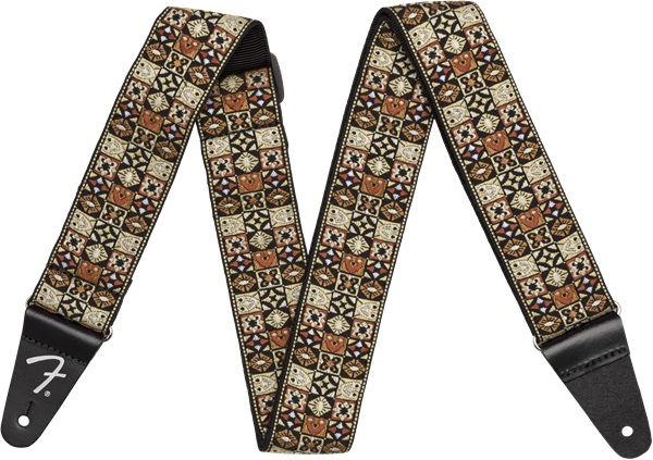 Fender's 2" vintage-inspired woven straps boast a decorative mosaic design, as well as features to keep your instrument intact and stable during performances. The color schemes replicate straps used by famous Fender artists.