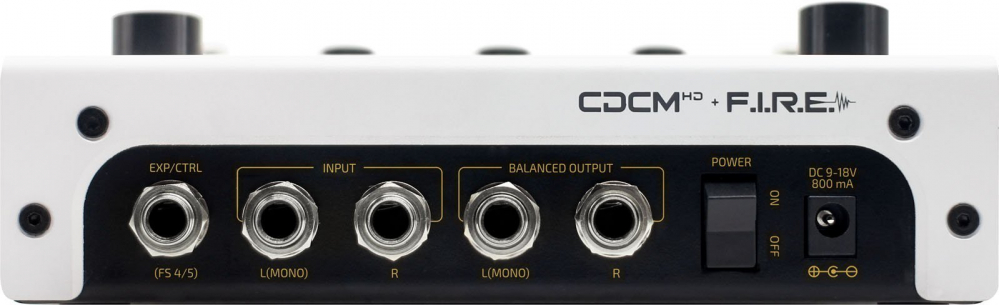 • Inputs: Two 1/4″ Tip Sleeve (TS) instrument jacks with individual input mode selector One 1/8″ • Stereo Auxiliary In (Aux In) jack One 1/4″ Tip Ring Sleeve (TRS) expression pedal/momentary footswitch input (EXP/CTRL) jack One 1/4″ Tip Ring Sleeve (TRS) unbalanced stereo FX loop return jack One Standard 5 pin MIDI input jack
